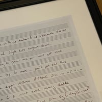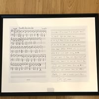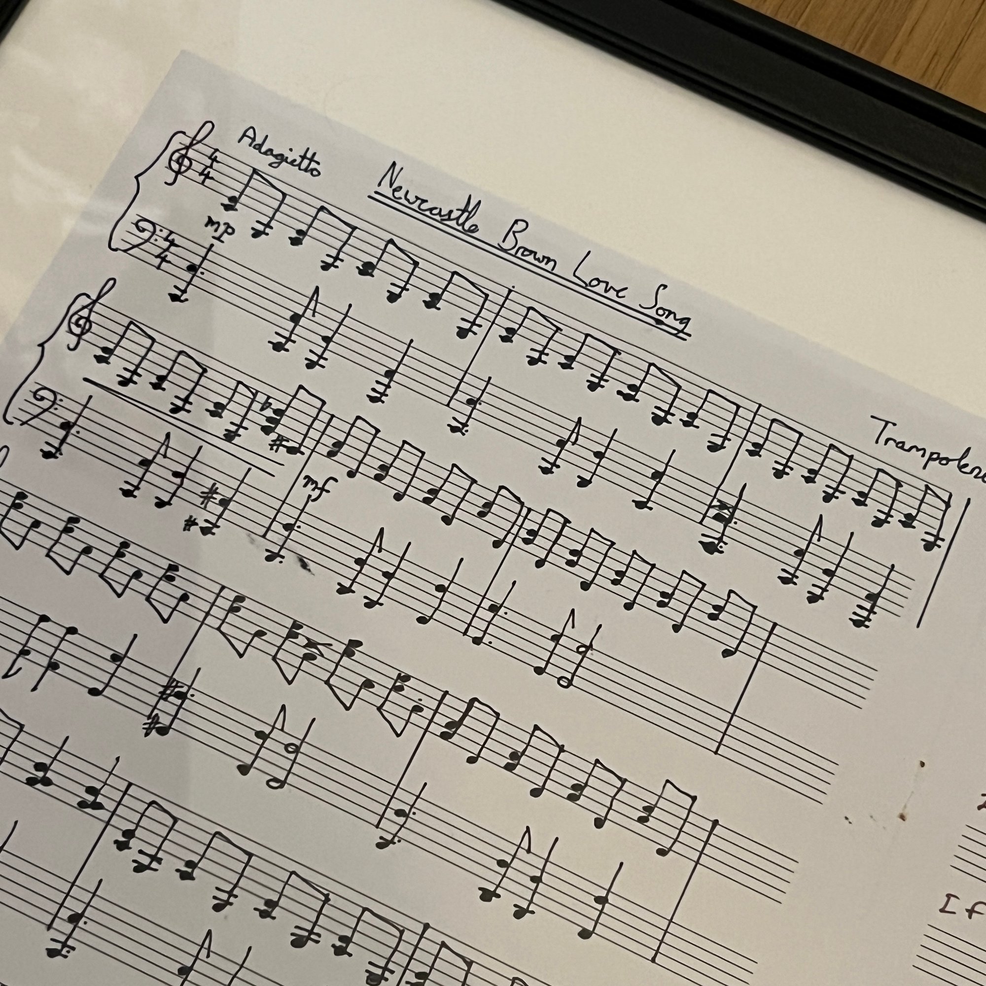 Framed "Newcastle Brown Love Song” handwritten & signed sheet music