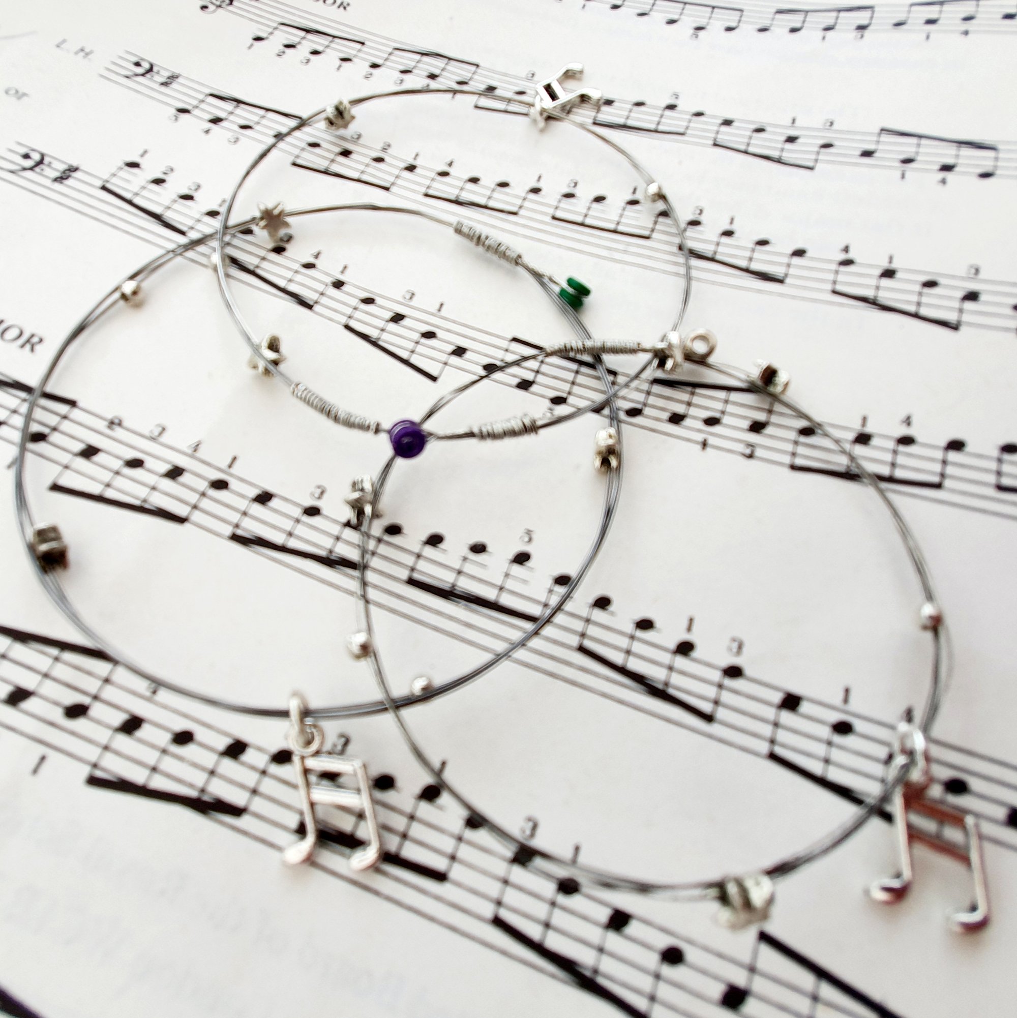 Also available with beads and a music note charm (click through photos to see).