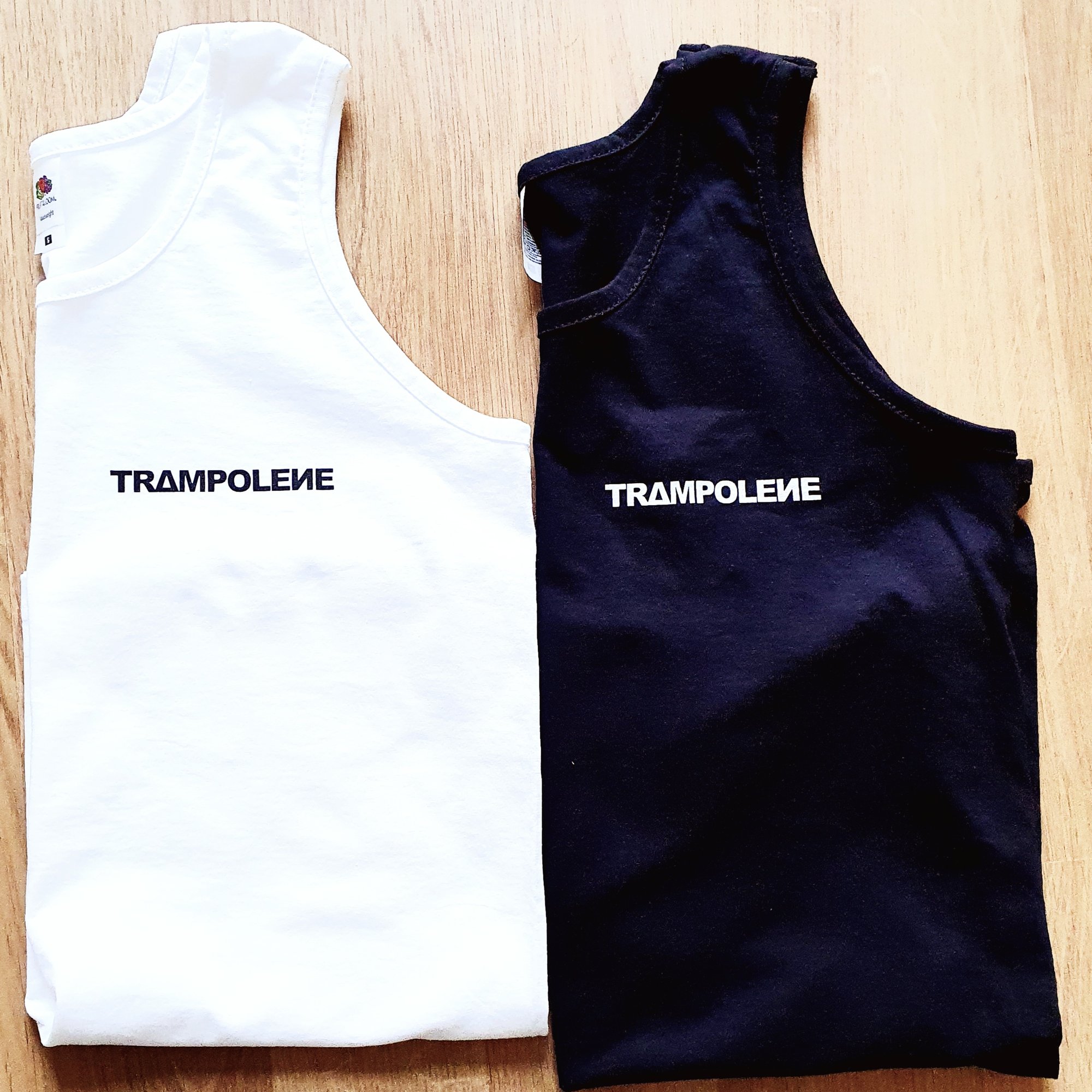 TRAMPOLENE vest in black or white, mens slim fit 'athletic' style
